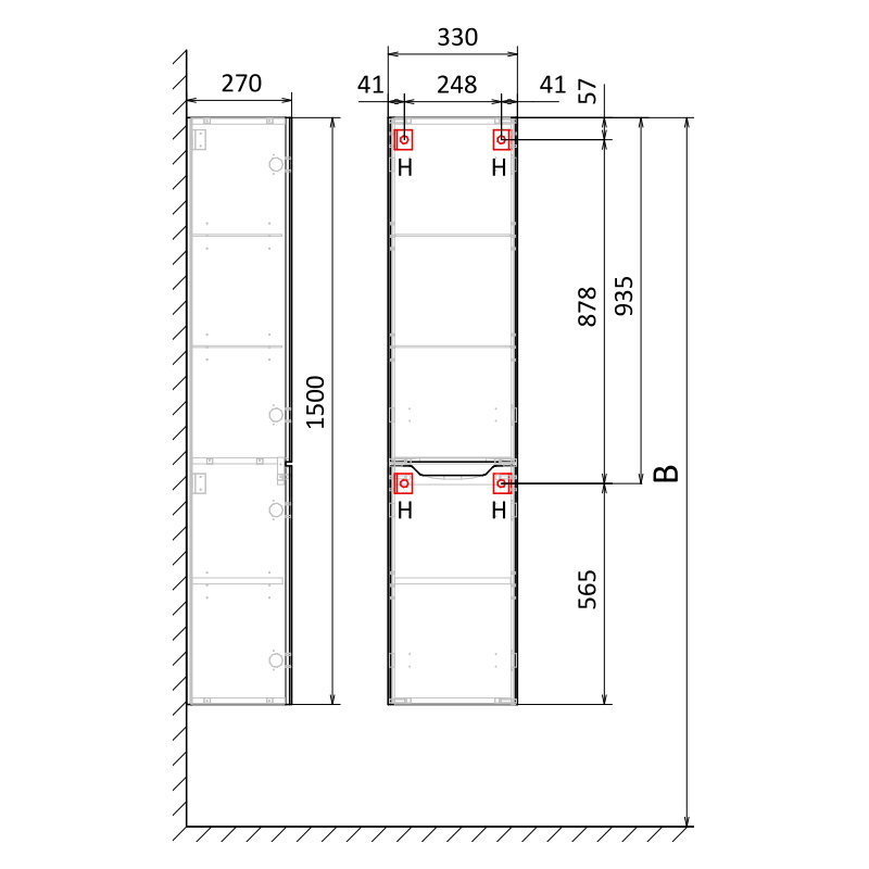 /Пенал 330*1500*270 подвес ПВХ Белый Statik RAVAL