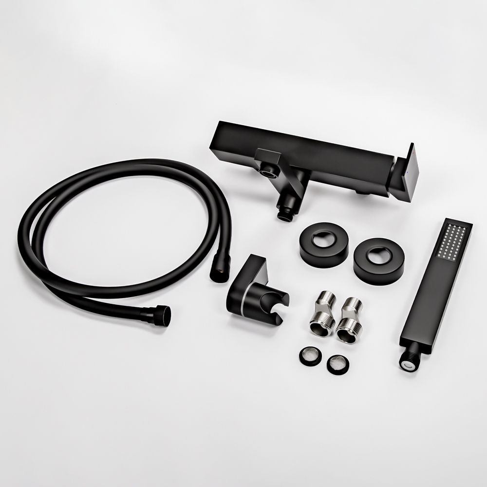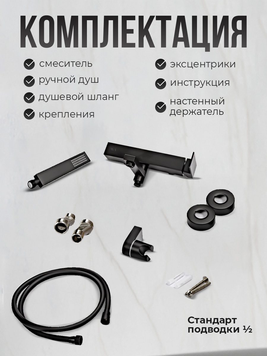 смеситель; эксцентрики; душевой шланг; ручнй душ; настенный держатель; инструкция.