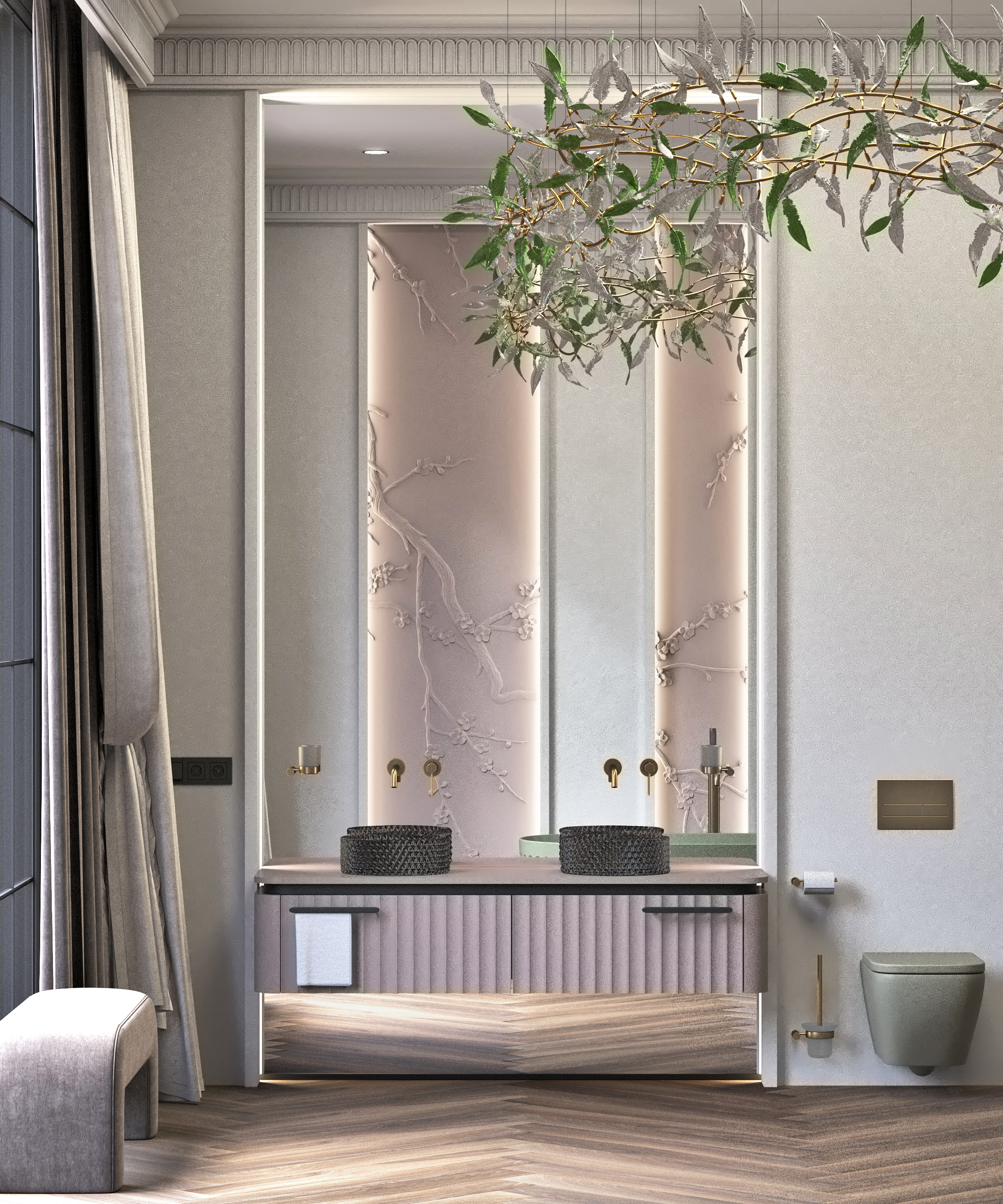 В такой ванной комнате можно легко отключиться от внешнего мира и погрузиться в особую атмосферу.